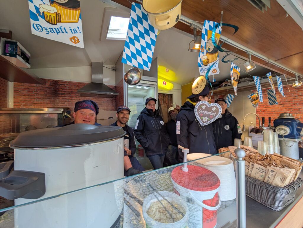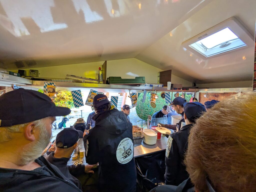 Zugegeben: „aufgekocht“ haben wir diesmal nicht – wir haben reinwegs Weißwürste aufgewärmt 😄. Kein Schweinsbraten, kein Alpendöner – also eher Festlmacher light. Aber mit den klassischen Weißwürsten, dem herrlich süffigen Wochinger Bier, und natürlich den weltbesten Schaumbechern und Kokosstangerln war die Stimmung trotzdem auf Festniveau.